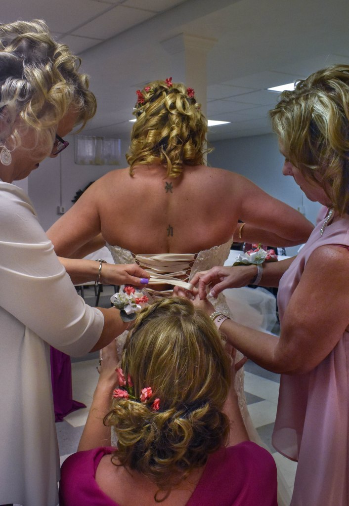 After Weeks of preparation the day of Heather’s wedding finally came, but there was still much to do. On a day this special doing hair, makeup, getting dressed all need a little help. Heather wanted her dress, “So tight, I can’t breathe” and that’s how she had it. Alex and Heather Smith finally got to tie the knot on October 3rd, 2020.