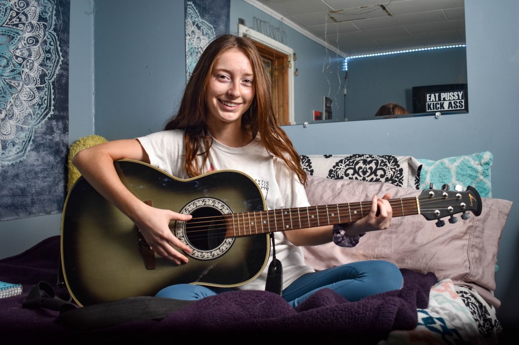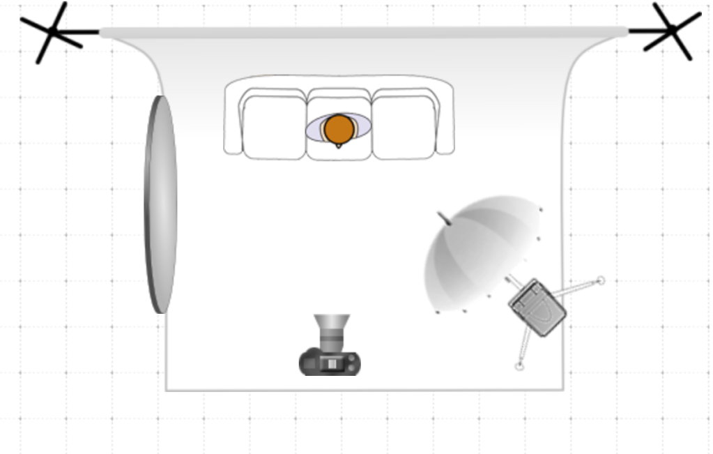 Makayla Lewis-O’Rourke recently decided to pick up the guitar and like to practice on the comfort of her bed. She doesn’t know any full songs, but she was able to play a few cords for me and is excited to continue learning more. An approximate representation of my lighting setup.